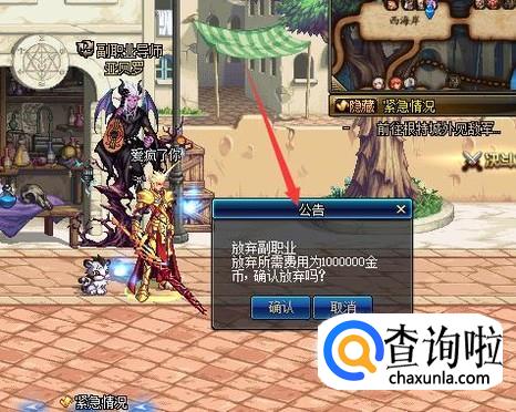 点击放弃副职业后会弹出公告,要准备足够的金币才可以放弃副职业,如图