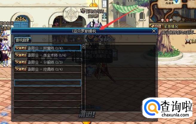 点击任务会弹出亚贝罗的委托,这个就是更换副职业的功能,如图
