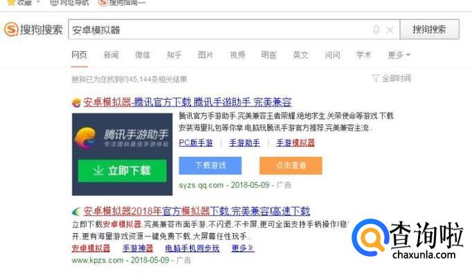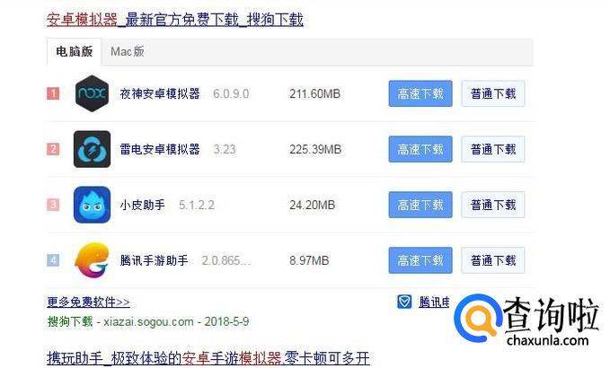 在搜索框内输入安卓模拟器下载,点击搜索,会出现很多下载链接。