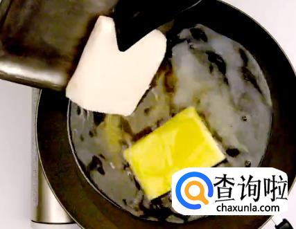 锅里倒入大量食用油,放入牛油,熬制融化。