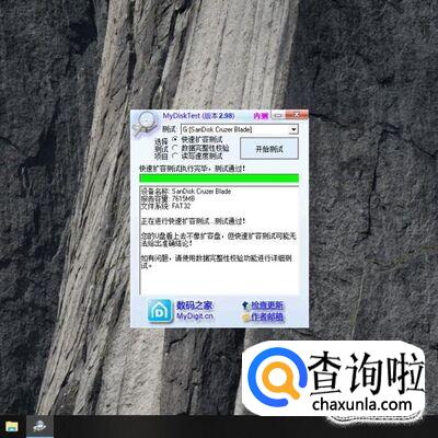 首先我们测试U盘是否扩容过,点击开始后,很快软件就能给出测试结果。测试通过就表明U盘不是扩容U盘。