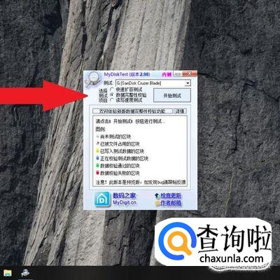 MyDiskTest是一款识别U盘或者SD卡等移动存储设备是否扩容的工具,软件占用的存储空间只有1MB。它还可以检测存储设备的闪存是否有坏块,是否采用黑片,并能测试存储设备的读取和写入速度。接下来小编就告诉大家怎么使用MyDiskTest这三个功能。