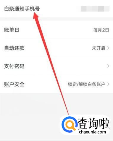 进入之后,点击“白条通知手机号”,如图所示。