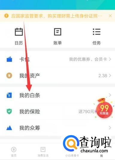 进入之后,选择“我的白条”,进入下一页面,如图所示。