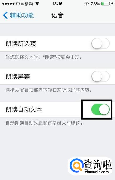选择语音朗读的类型。在选择语音功能之后再选择想要让手机朗读的类型就完成设置了。