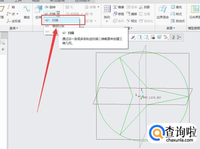 点击“编辑扫描截面”,进入草绘剖面,如图所示。