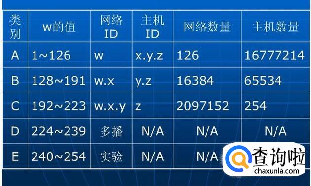 大家已经知道ip地址的定义了,其实IP地址分为A类,B类,C类,D类,E类。A类的IP地址范围为0.0.0.0-127.255.255.255,B类的IP地址范围为128.0.0.0-191.255.255.255,C类的IP地址范围为192.0.0.0-223.255.255.255。