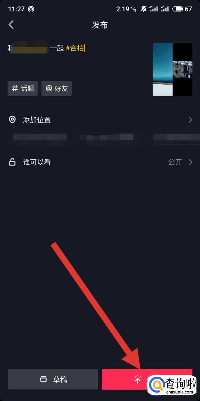抖音与别人合拍需要找到想要合拍的视频,点击“分享”,选择“合拍”命令,进入合拍页面点击“拍摄”按键,拍摄完成后点击“下一步”,最后编辑发布内容,点击“发布”即可。
