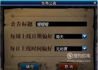 发布公告后,可以填写标题、每周上线/每日上线时间,发布公告期间退出游戏/选择角色则会结束招募。