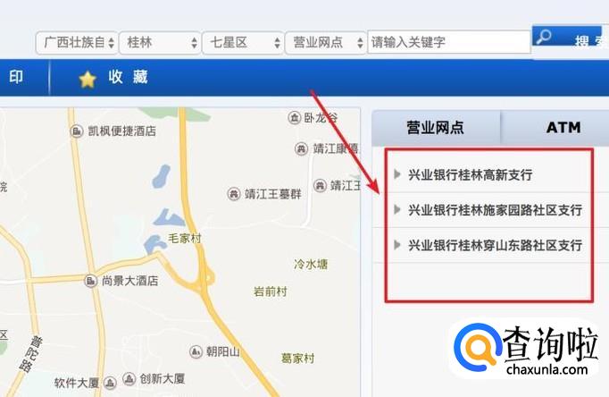 打开网点地图页面后,在上方输入自己银行卡开卡的大概位置。点击查询按钮。