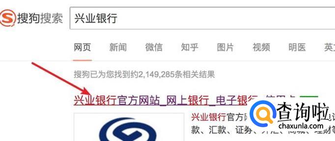 打开搜狗搜索,输入‘兴业银行’来搜索,点击打开官方网站。