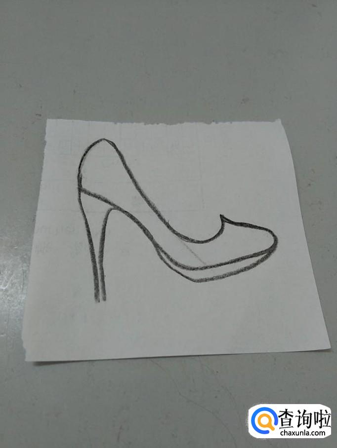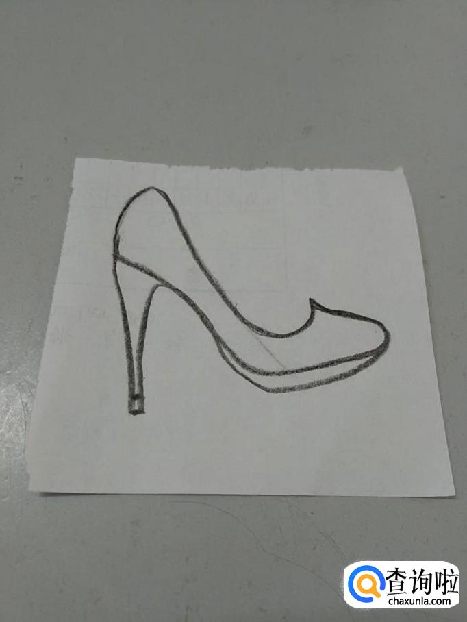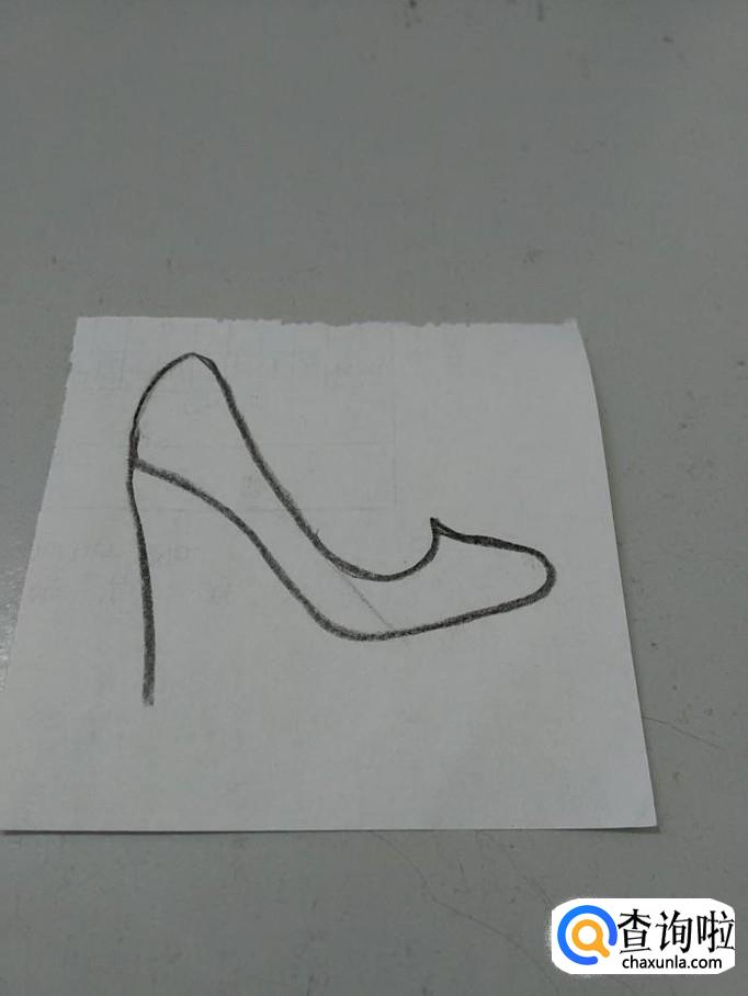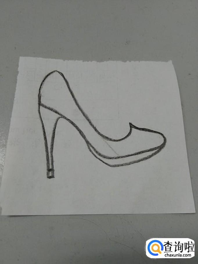 最后再鞋跟的下面画两条横线,表示鞋跟上的金属片,高跟鞋就画完了。