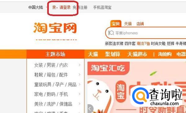 首先,我们需要进入淘宝网网站,如图所示,点击网页左上角登录按钮,先登录。