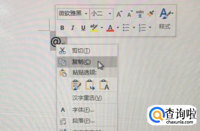 点击鼠标右键,选择复制(或者也可以使用复制快捷键Ctrl+C)。