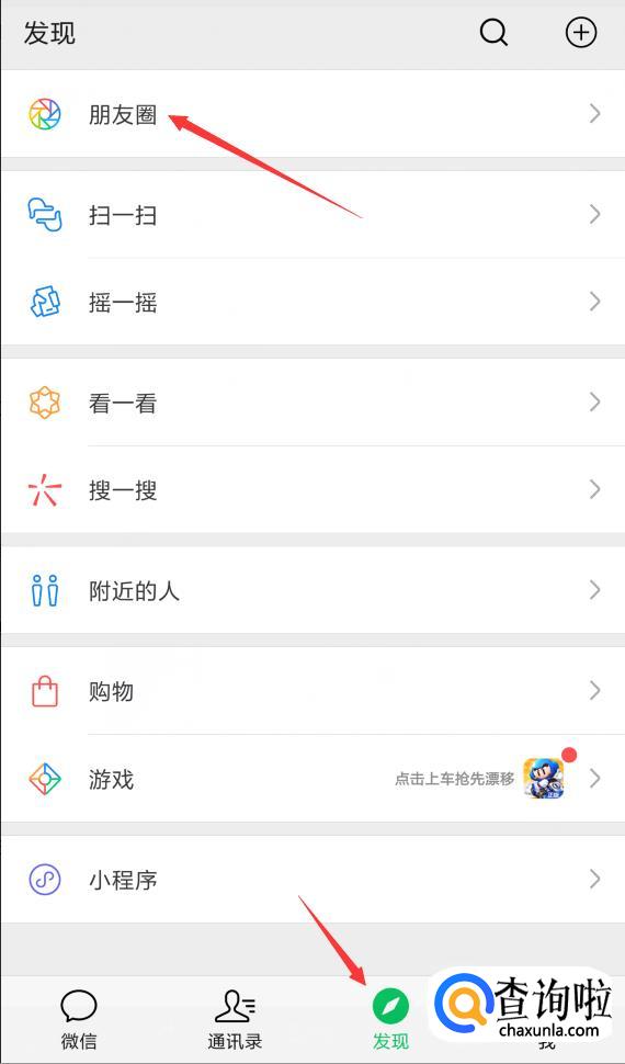 在新弹出的页面中再次点击【朋友圈】,这就进入到你自己的【朋友圈】里面了。