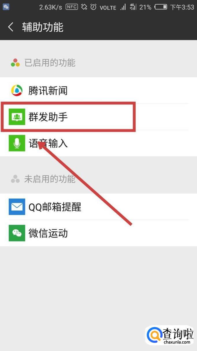 然后找到【群发助手】,点击进入。