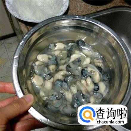 带上手套,用小刀子将生蚝的肉全部挖出来,放在碗里,用清水清洗干净。