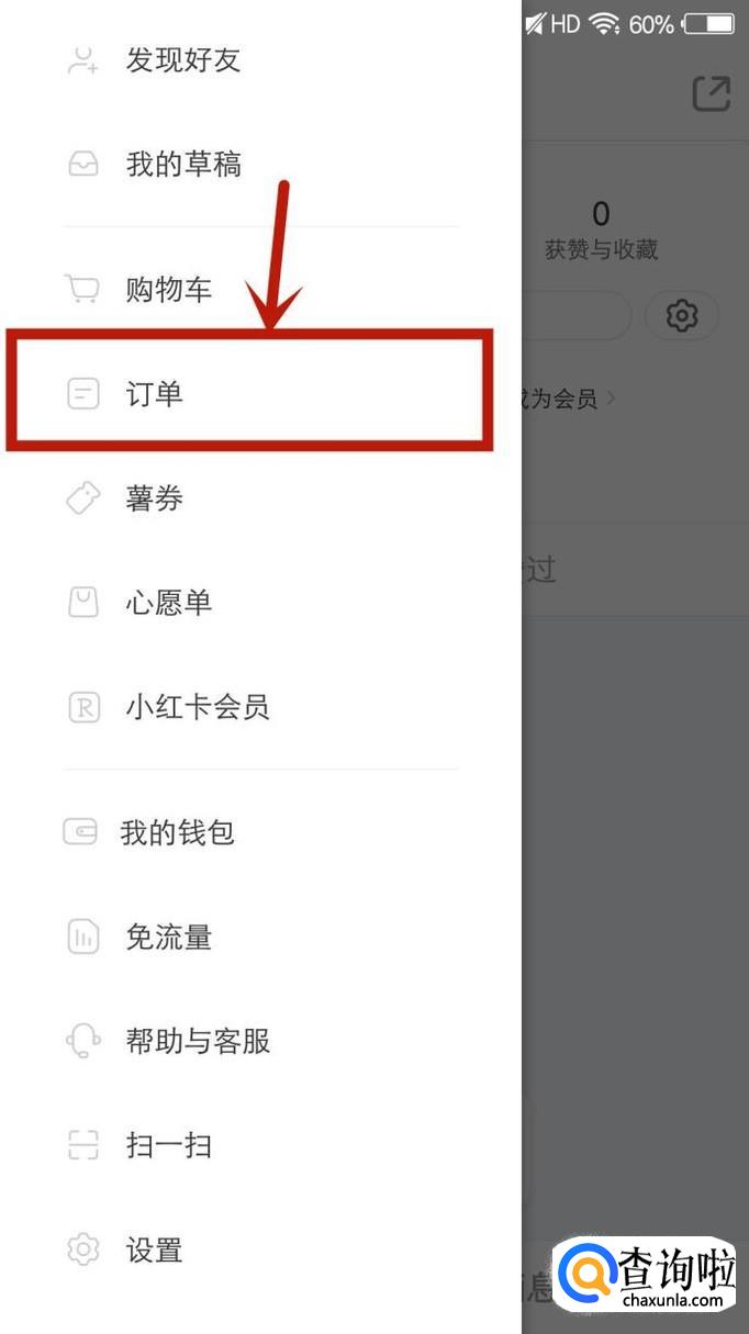 在出现的选项中选择“订单”进入。
