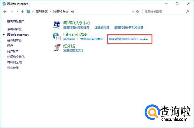 弹出的界面,我们点击删除浏览的历史记录和cookie;