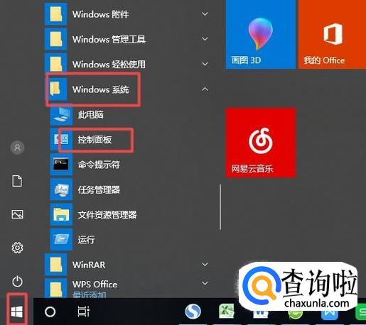 首先,我们点击电脑左下角的微软按钮,弹出的界面,我们进行下滑,找到windows系统,点击打开它,弹出的界面,我们点击控制面板;