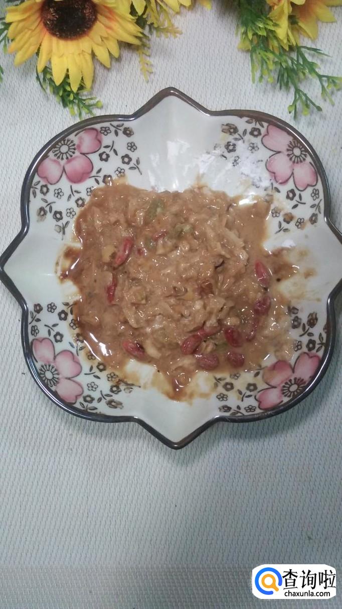 加入适量糯米粉,再加入适量面粉,用少许清水和成泥状,做成果泥。