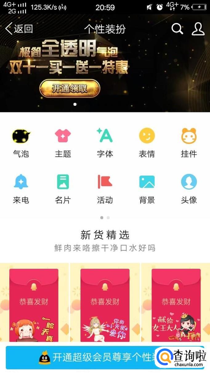 然后我们在消息页面点击左上角的头像,或者是继续向左滑动,再点击个性装扮。
