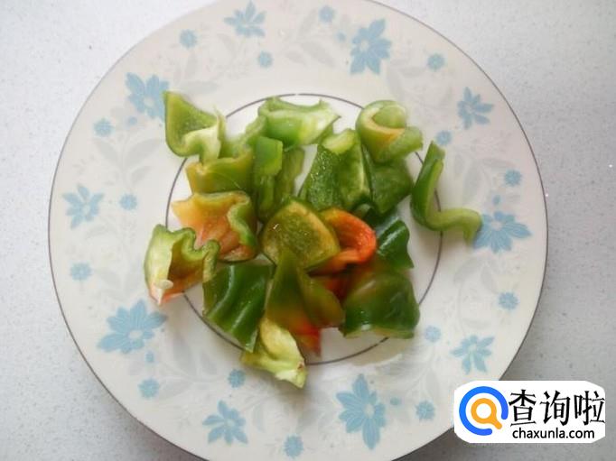 青椒用水清洗干净,控干水分,切成片。切好葱,姜,蒜,备用。