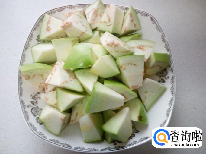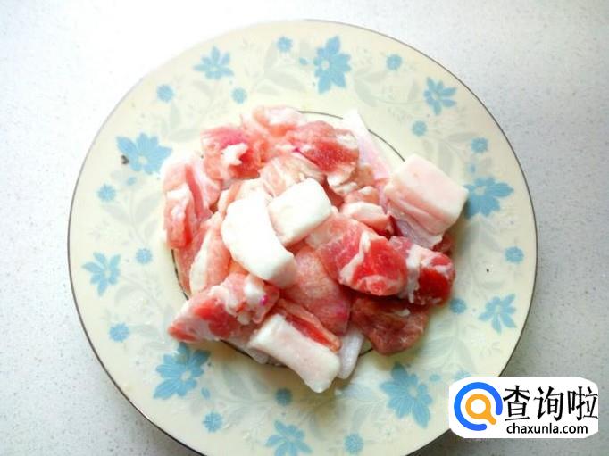 猪肉用水冲洗一下,控干水分,切成小块(肉要稍肥一些,这样炖出来的茄子比较好吃)。