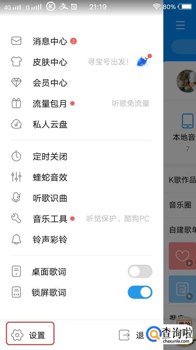 出现浮动菜单,我们点击最下面的“设置”。