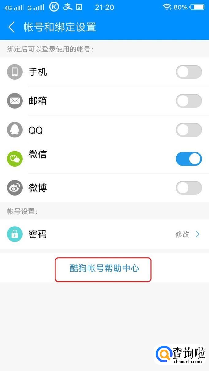 然后,就能看到当前登录的账号形式了。我们要注销账号,就点击底部的“酷狗账号帮助中心”。
