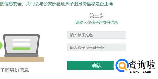 填写孩子的身份信息,点击“确定”即可完成成长守护平台绑定。