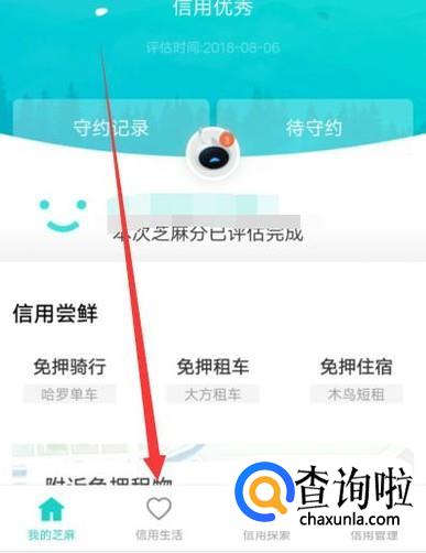 进入之后,点击图示位置的“信用生活”,进入下一页面,如图所示。