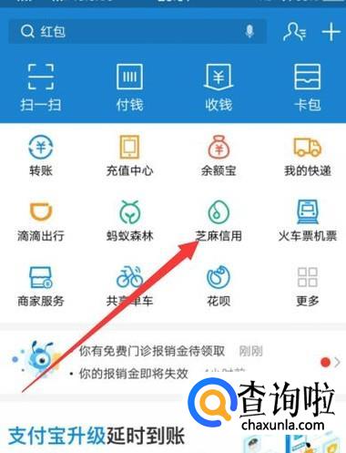 进入之后,点击“芝麻信用”,进入下一页面,如图所示。