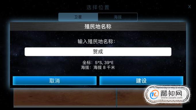 定位好后,看得到坐标,你可以为你的殖民地取个响亮的名字,建好后就存在了,你随时可以通过游戏主界面的殖民地登录,查看你的殖民地人口情况,人口越多,能够解锁更多的新建政策。
