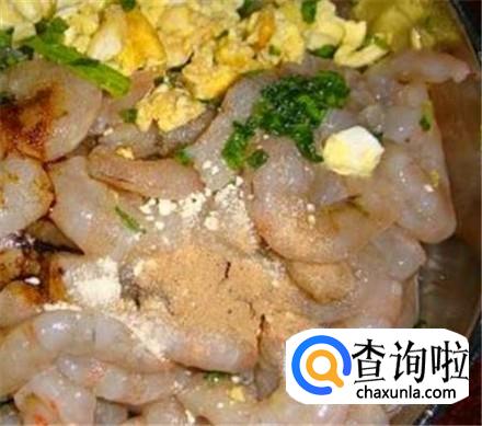 青虾剥出虾仁放在鸡蛋碎里,加上葱姜末和食盐以及一点点味素调匀,放入稍凉韭菜末,素的馄饨馅做好了,非常鲜美哦。