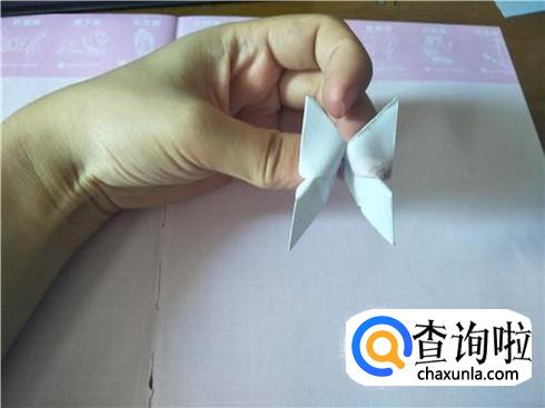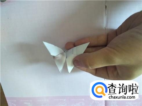 最后,就将它的形状,沿着最开始的一条折痕,进行反方向的折叠,最后在使劲的按压,便形成了一只纸质的蝴蝶。