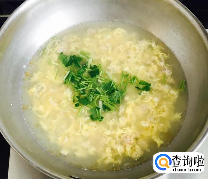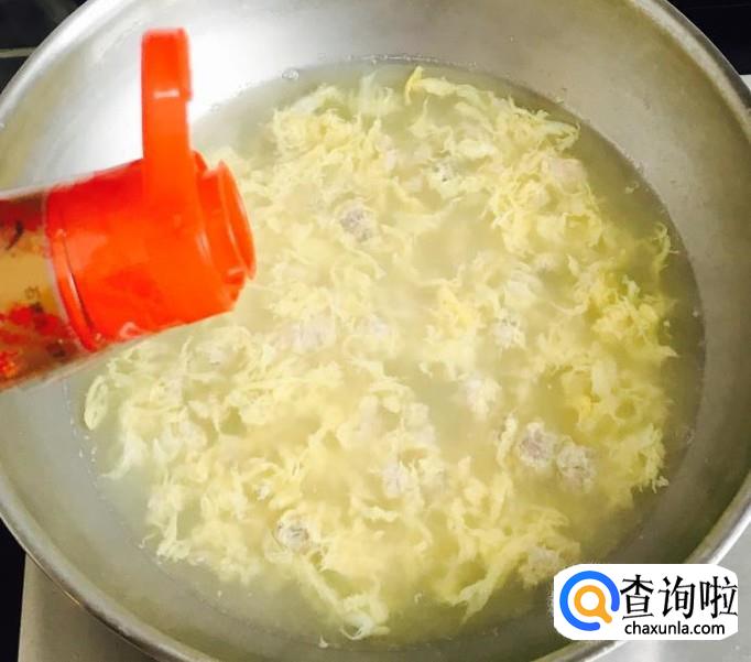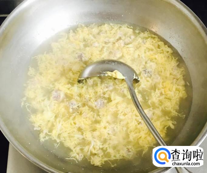 再次煮沸后均匀的淋入鸡蛋液,用汤勺搅散至成熟后关火