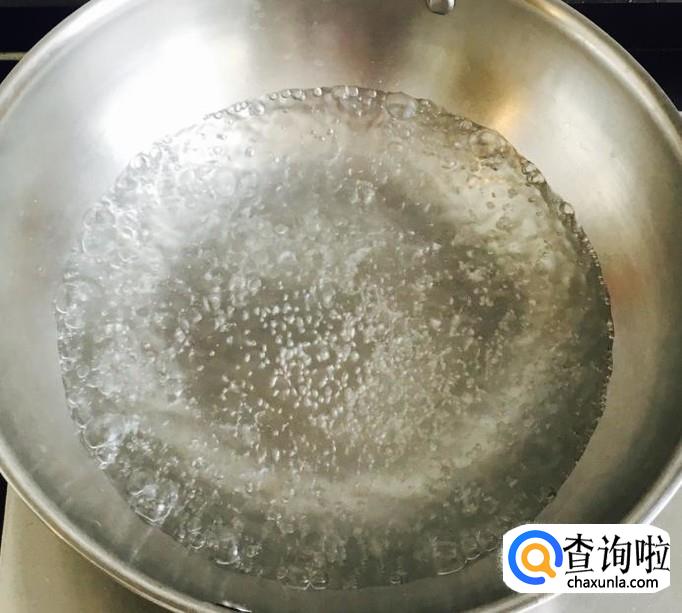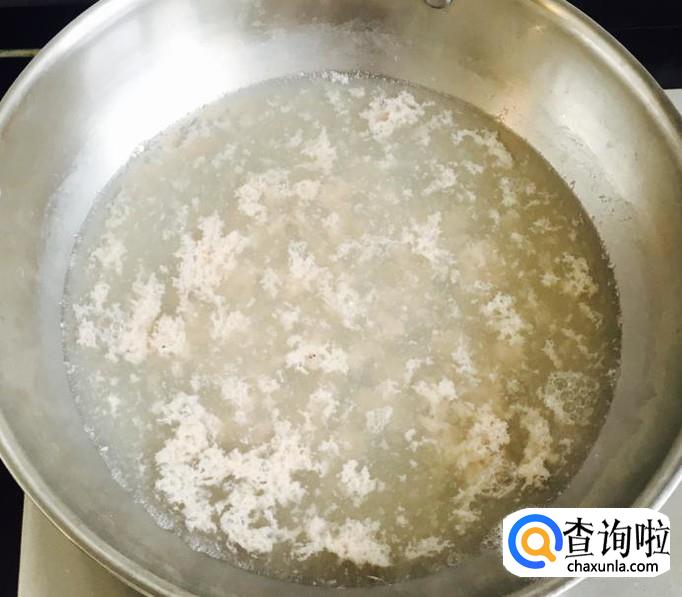 锅中加入适量的清水煮至沸腾放入皮皮虾肉用汤勺搅散