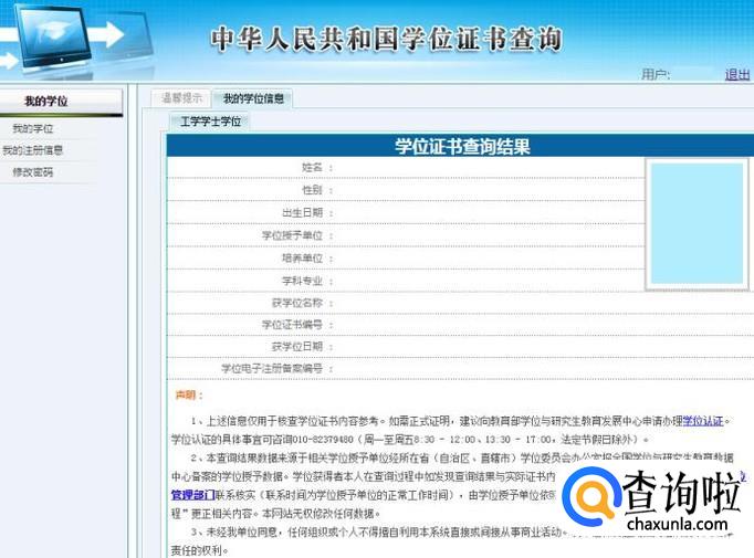 返回开始的查询系统页面,输入邮箱、密码和验证码,登录,等待页面跳转,然后就会看到自己的学位信息了;