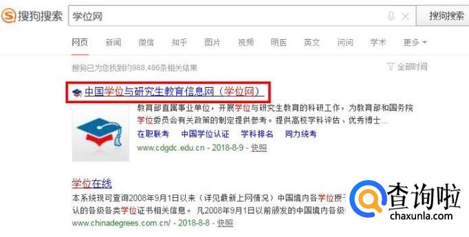 首先搜索学位网,全称是“中国学位与研究生教育信息网”,点击第一个网页(www.cdgdc.edu.cn)进入;