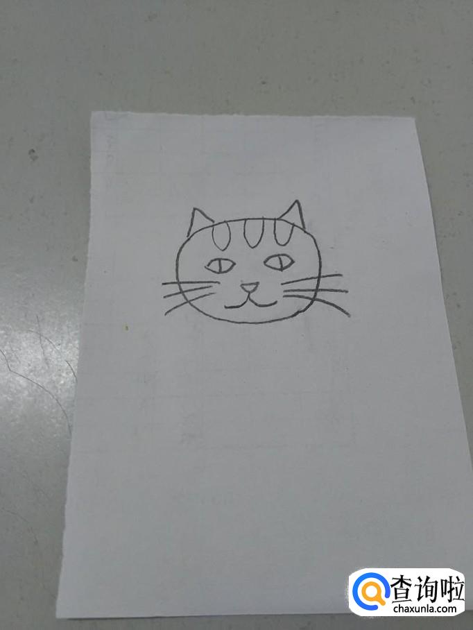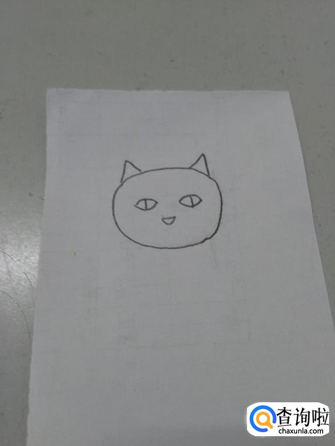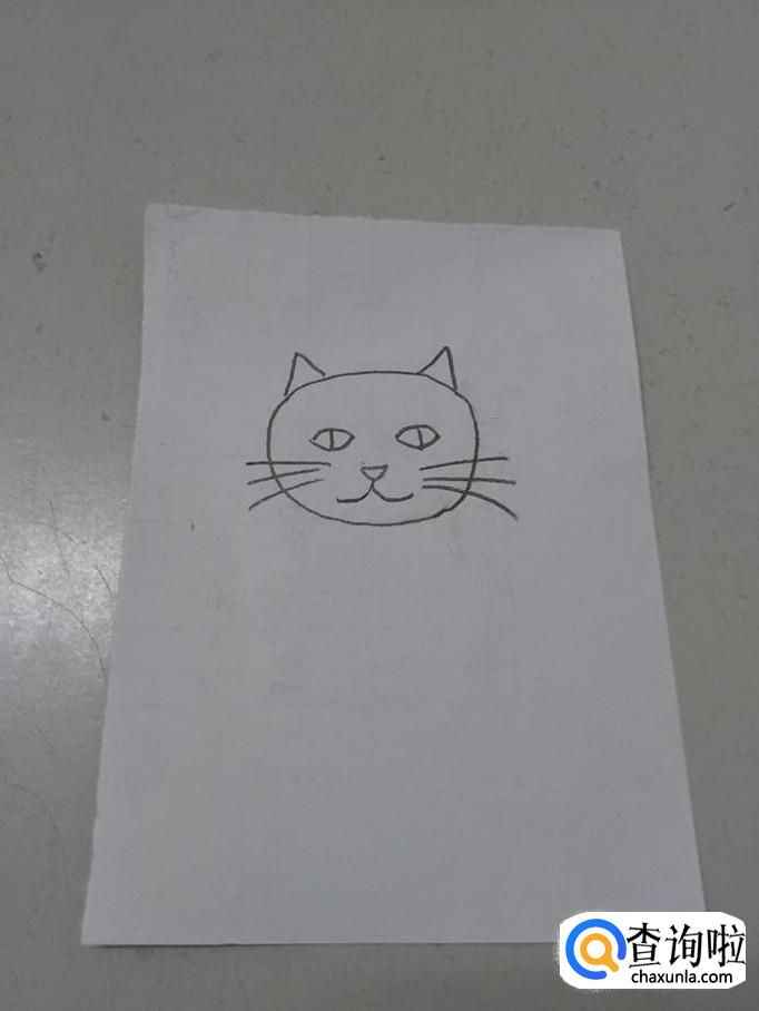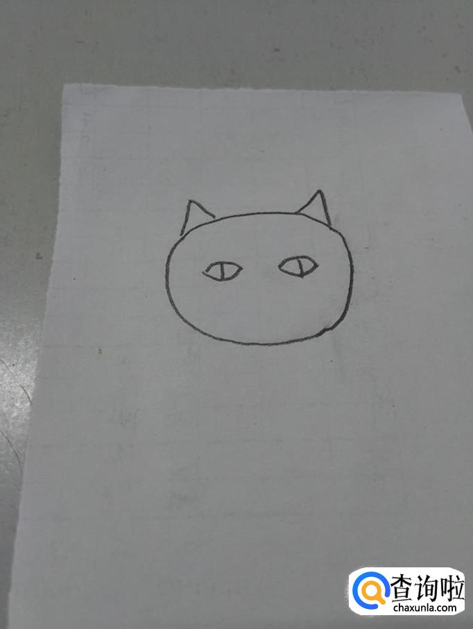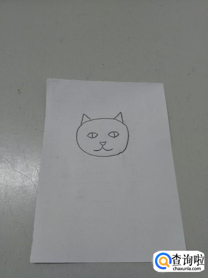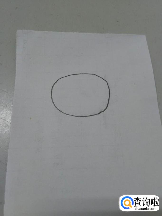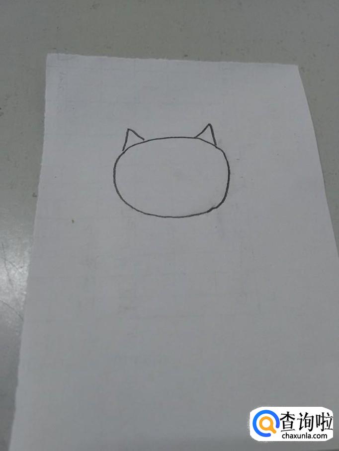 先用笔在纸上画一个椭圆形,表示小猫的头,扁扁的,才可爱。