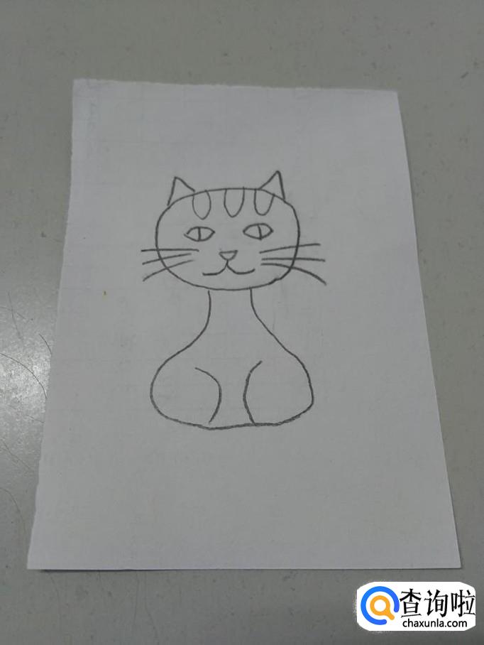 画小猫时,要画出小猫独特的眼睛、胡子、头上的花纹以及往上卷的尾巴,下面就来画可爱的小猫。