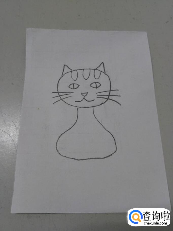 在头部下面,画一个花瓶的形状,表示小猫的身体。
