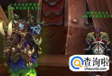 到达主城奥格瑞玛的传说大厅门口后,面对传说大厅门口,左边有两个NPC,一个叫做亡灵卫兵奈萨里安和狼骑兵波尔克。