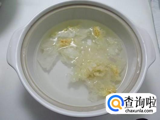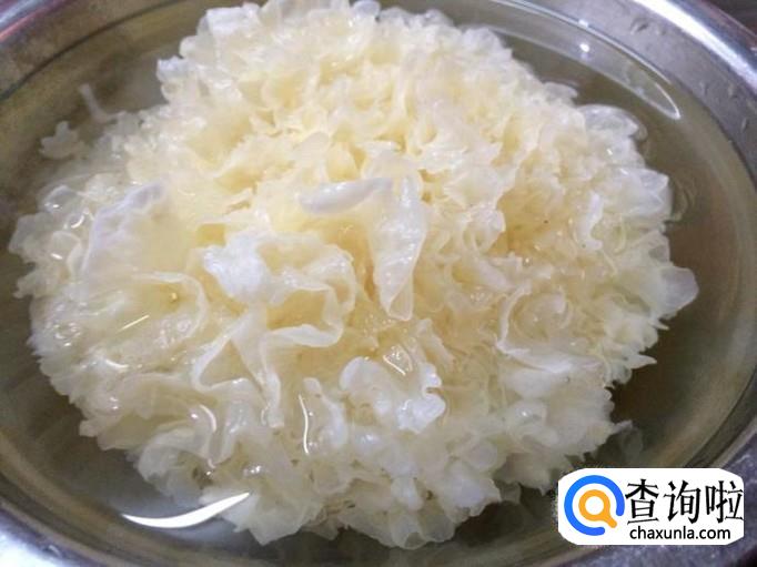首先干银耳要进行泡发,打入足量的水,可以使用温水。泡发一个小时以上,将根蒂摘除,一定要将银耳撕碎,不能整颗煮。