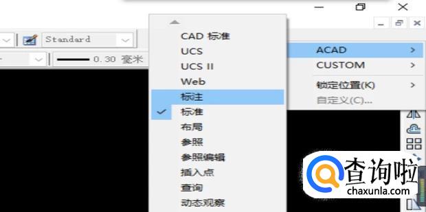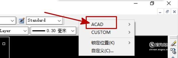 右键点击空白处弹出的对话窗格中点击【ACAD】。