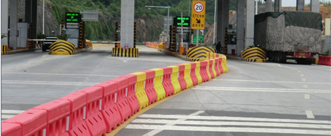 部分水马还有横向的通孔以便通过杆件连接以形成更长的阻挡链或阻挡墙。其一般用于道路交通设施,在高速路、城市道路及天桥街道路口常见。