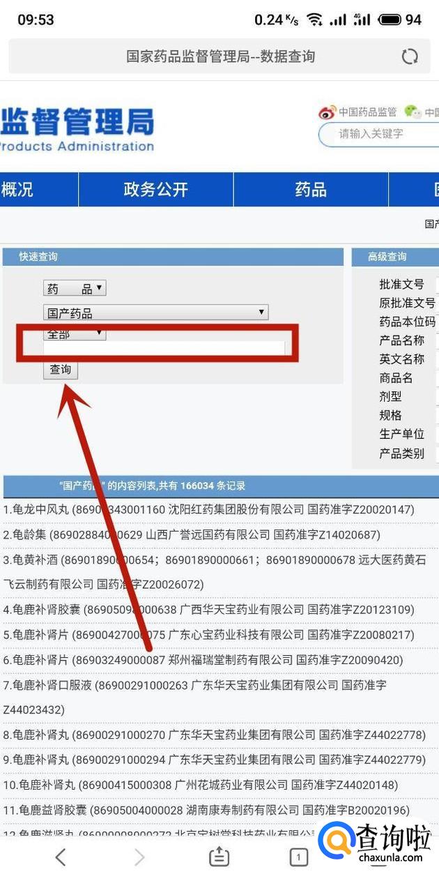 进入之后,在图示位置输入“药品的国药准字号”,点击“查询”即可辨别真伪。