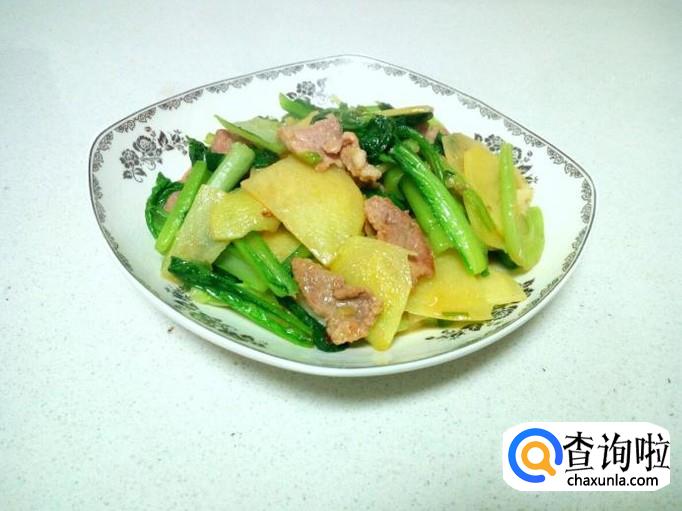 小白菜质地柔嫩,味清香,具有消食利肠,生津止渴,化痰止咳,清肝等功效。土豆性平味甘,具有健脾和胃,益气调中,解毒消肿等功效。用小白菜与土豆再搭配肉同炒,清新爽口,营养味美,风味独特。下面介绍小白菜炒土豆片的家常做法。