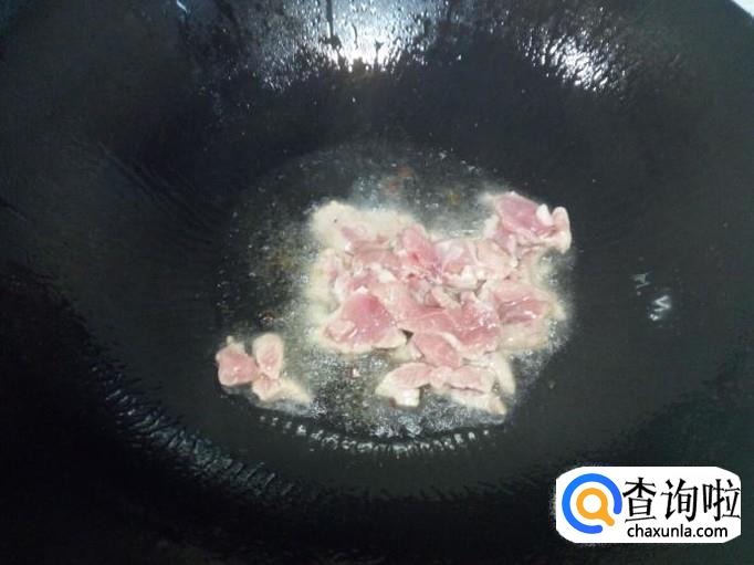 锅里放入油加热,油热后放入花椒爆锅,放入肉片翻炒。